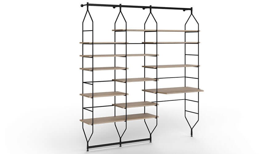 Frame | Steel frame and wooden shelves. Standard Oak Wood in various varnishes. Available also in Smoked Eucalyptus and Matte Lacquer. |