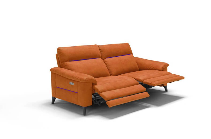 - Notes: in the recliner version the model is made with a combined mechanism with backrest and footrest movement, available only in the electric version with control positioned on the external side of the sofa. The relax element is always detached from the fixed element and is attached with a bayonet system. The central seats with electric recliner mechanism are equipped with touch controls positioned on the side of the seat itself.